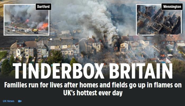 当地时间20日,英国众多媒体头版头条,无一例外聚焦高温干旱天气在伦敦及周边引发的火灾。这些火灾已造成数十栋房屋被毁,波及上千人,许多人无家可归。