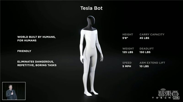 通过公开资料了解,特斯拉仿人机器人计划采用电机方式驱动,机身采用轻量化材料,外形接近人类,其设计身高约为173公分,重约56公斤,具有40个自由度(每条胳膊6个,脖子2个,躯干2个,每只手6个,每条腿6个)。有较好的平衡能力,行走更加自然,可以实现8km/h速度运动。可以实现搬运功能,最多可提约20公斤的物品,手臂伸展举力约4.5公斤。
