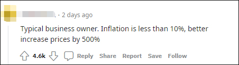 “典型的老板:通胀将近10%了,那我得涨价500%”;