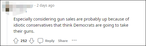 更讽刺的是,考虑到最近枪支暴力案件泛滥,枪支销量可能还上升了……