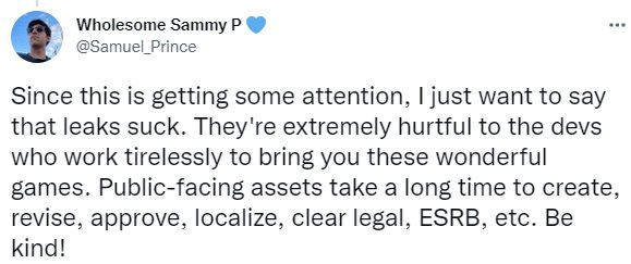 顽皮狗工作室高级编辑Samuel Prince在推文下回应了Arne Meyer对泄漏的感受。他说到:“这些不负责任的泄露对那些孜孜不倦地为你带来这些精彩游内容戏的开发人员来说,非常痛苦。游戏内容从零开始制作到面向大众需要花费相当长的时间,这包括创建、修改、获批、本地化、根据法律条例完善内容、通过ESRB评级等一系列漫长的过程。对我们好点吧!”
