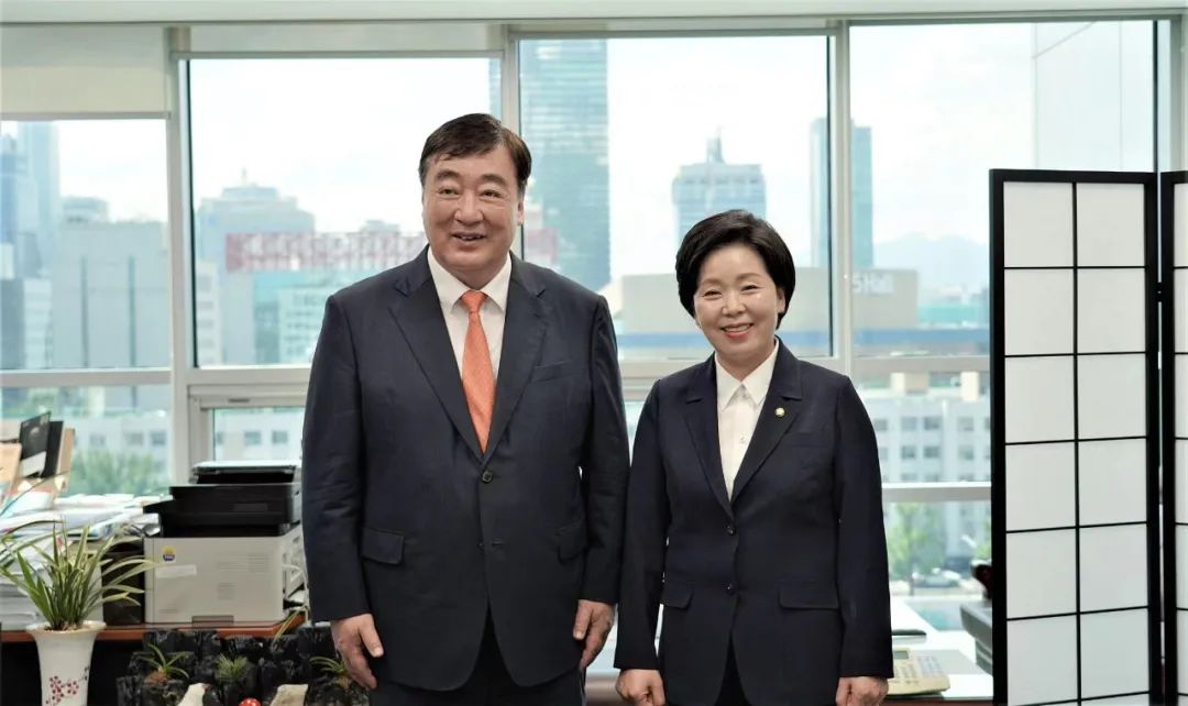 7月25日,邢海明大使会见韩国国会议员、国民力量党半导体产业竞争力强化特别委员会委员长梁香子,就中韩半导体等领域务实合作交换意见。