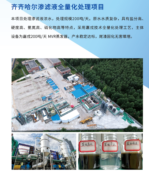 其次,嘉戎技术建立标准化、可定制、多工艺的集装箱式设备产品梯队,实现单个集装箱或多个集装箱并联的定制化方案。在工艺创新,嘉戎技术实现高浓度污废水减量化、趋零排放处理。首先,在垃圾渗滤液达标排放处理,形成以“生化+膜处理”和“全膜法”为主的处理工艺。而在工业废水的深度处理,研发出“外置式TMBR+NF/RO”组合工艺,具有处理稳定可靠达标、高水回收率、废水可资源化利用的优势。另外,在工业废水全量化和减量化处理、趋零排放处理方面,采用“TUF除硬+MT/ST/DT”组合工艺,具有无需额外添加助凝剂和絮凝剂、对膜污染少、占地面积小的优势,较之传统工艺提高浓缩倍数、降低系统运行成本。其中重庆长生桥渗滤液全量化处理项目、哈尔滨齐齐哈尔渗滤液全量化处理项目等深受市场好评。