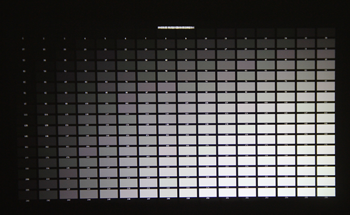 在红/绿/蓝三原色的还原表现中,联想thinkplus Air H6智能投影仪的表现称不上最佳,但也不算太次,只能算是在这个档位机器的应有水平范围之内。同样,在256位色阶测试图中也一样,联想thinkplus Air H6智能投影仪虽然没有特别亮眼的表现,但是基于LCD投影在色彩表现方面的优势,256位色阶还原图中各色位还是能轻松进行分辨。