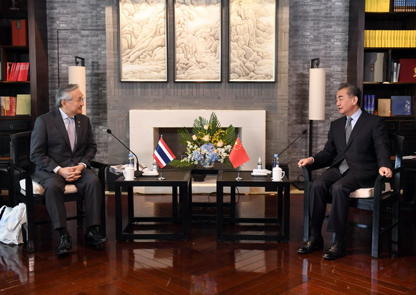 王毅说,今年是中泰建立全面战略合作伙伴关系十周年。站在新的起点上,双方要统筹谋划两国下一个十年全面战略合作、共同谱写“中泰一家亲”新的篇章。
