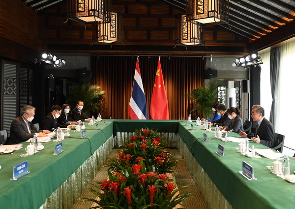 2022年4月2日,国务委员兼外长王毅在安徽屯溪同来华访问的泰国副总理兼外长敦举行会谈。