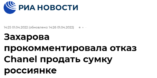 在西方因俄乌局势制裁俄罗斯背景下,俄公民在海外购买西方品牌商品时也受“牵连”?综合俄新社、“今日俄罗斯”等媒体4月1日报道,俄女子丽莎·利特温对俄新社称,自己日前在迪拜一购物中心购买法国时尚品牌香奈儿的包时,被要求签署文件,承诺不会将该包带到俄罗斯并在俄境内使用,否则不能购买。对此,俄外交部发言人扎哈罗娃1日做出回击。