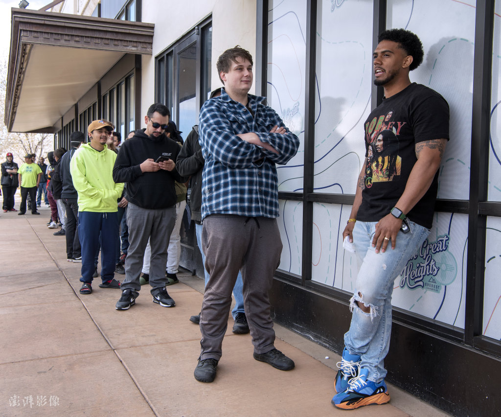 当地时间4月1日,新墨西哥州居民大麻专卖店外排队购买娱乐性大麻