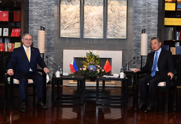 2022年4月3日,国务委员兼外长王毅在安徽屯溪同来华访问的菲律宾外长洛钦举行会谈。